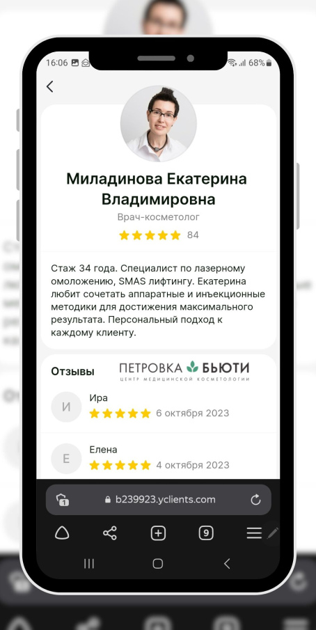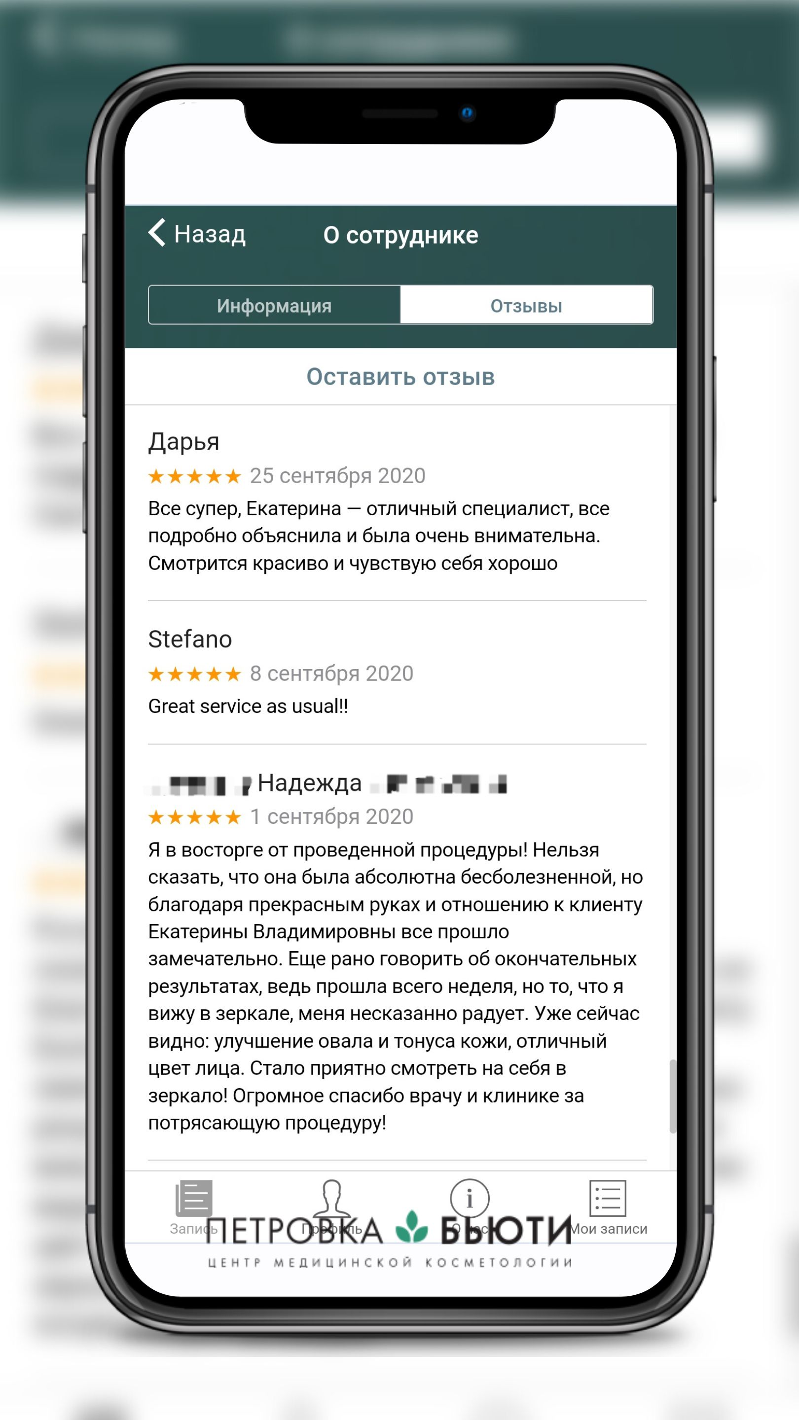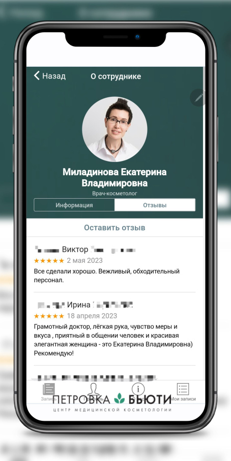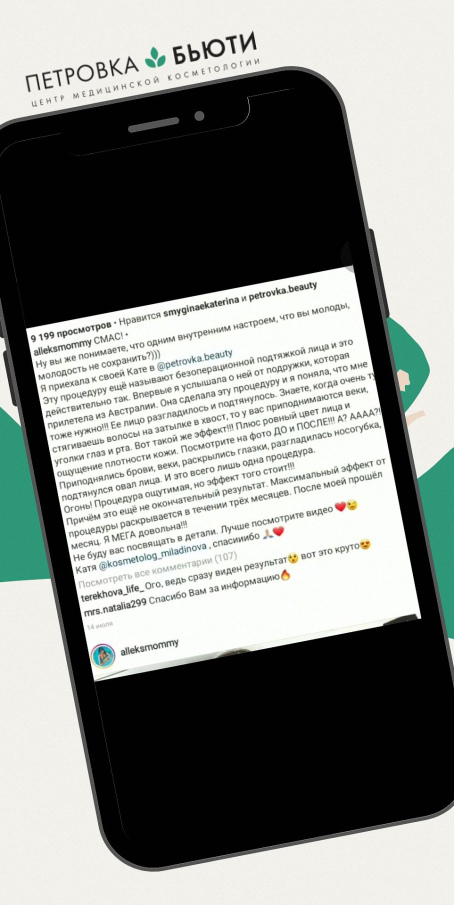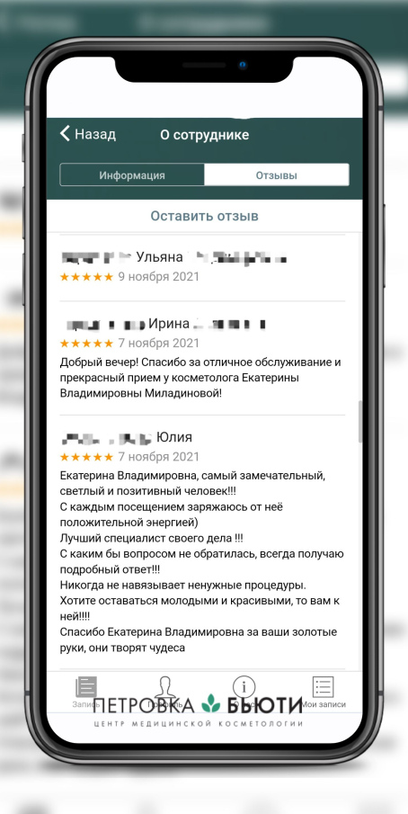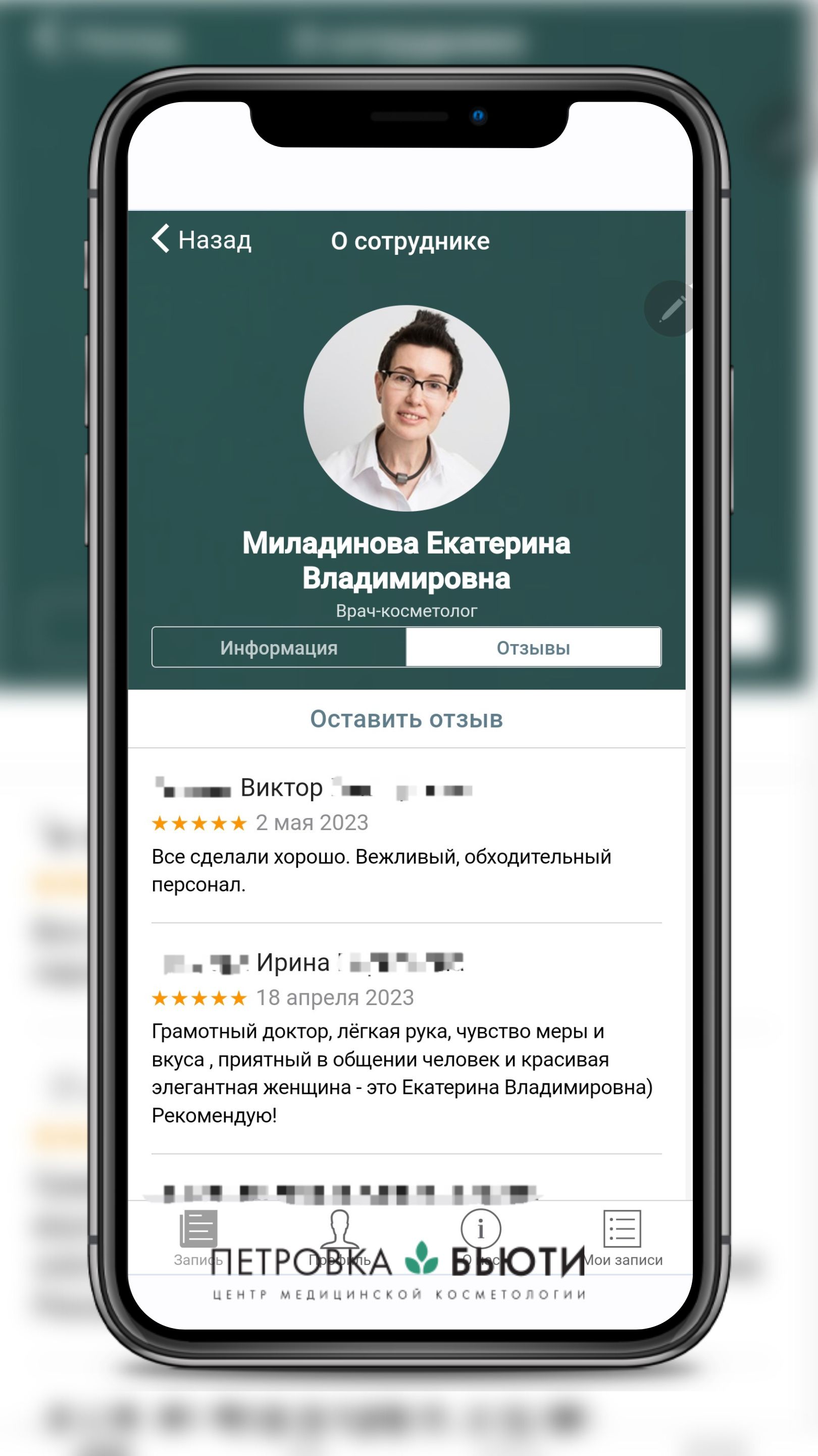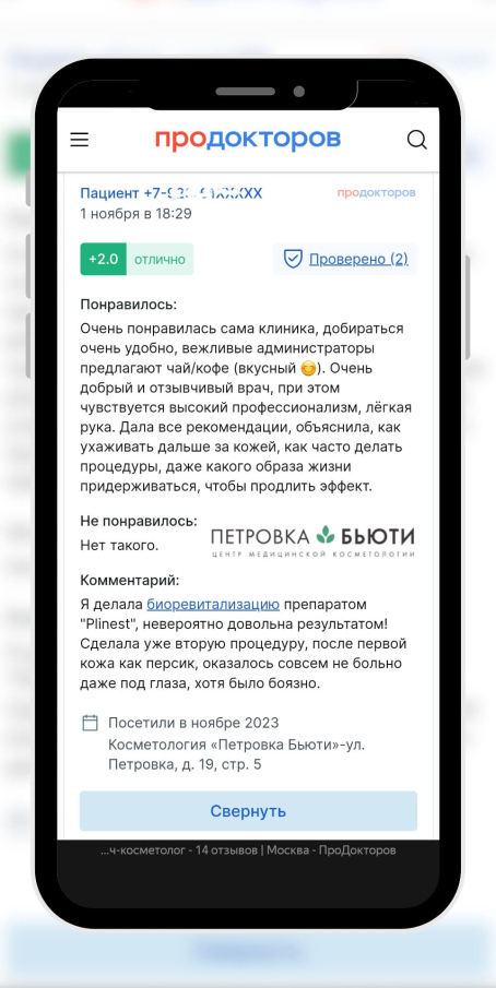 Здравствуйте! Мне делали процедуру "Чистка лица" + "Пилинг" в понедельник вечером, а уже в пятницу я была совершенно другим человеком. Большое спасибо врачу Миладиновой Екатерине Владимировне!