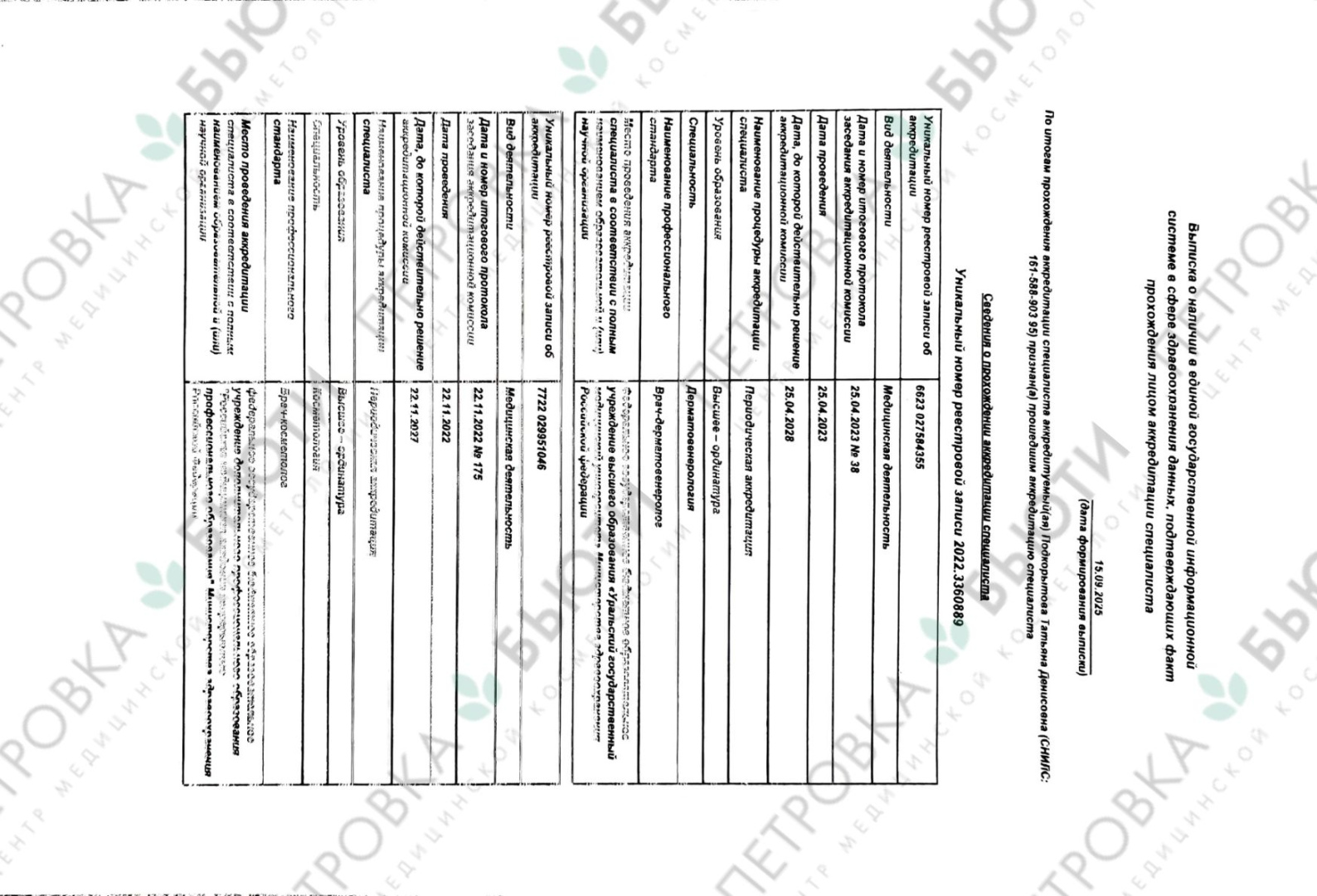 Меня зовут Татьяна Денисовна, и я являюсь квалифицированным врачом-дерматовенерологом и косметологом. Мой путь в медицине начался на 6 курсе медицинского университета, когда я осознала свое призвание помогать людям сохранять молодость и красоту. Именно тогда зародилась любовь к профилактике старения и созданию гармонии внешности.