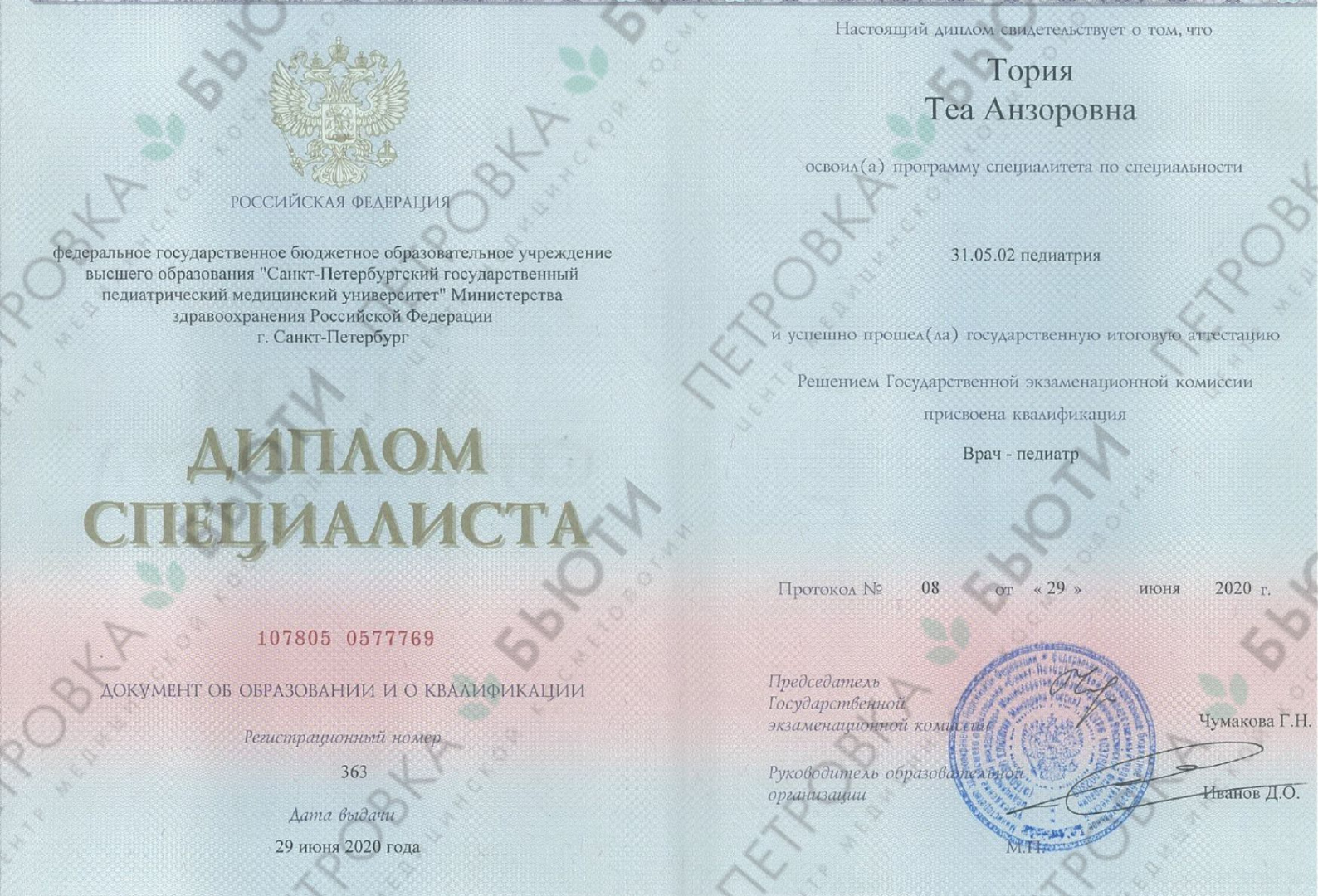 2020 - Санкт-Петербургский государственный педиатрический медицинский университет, педиатрия.