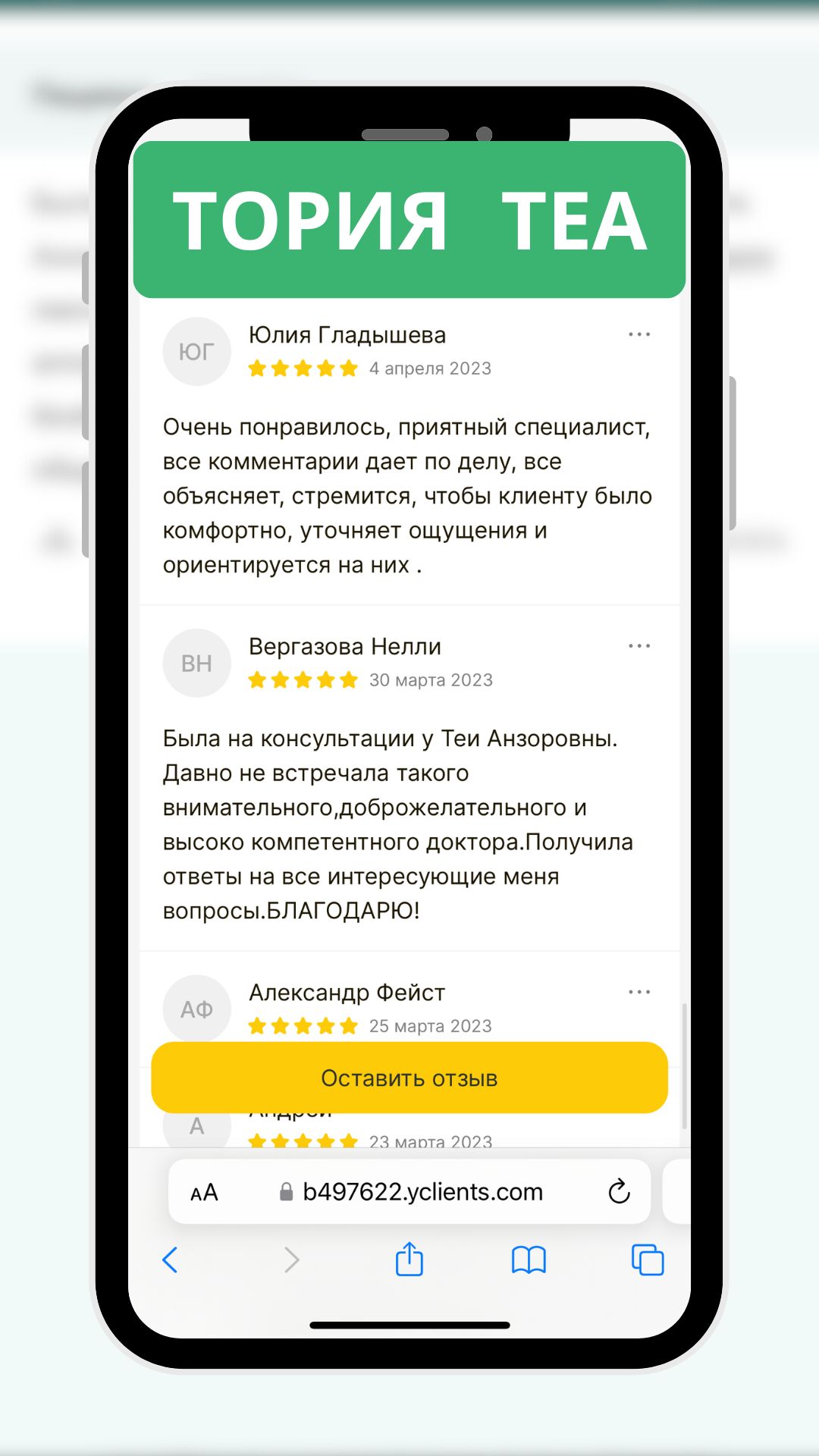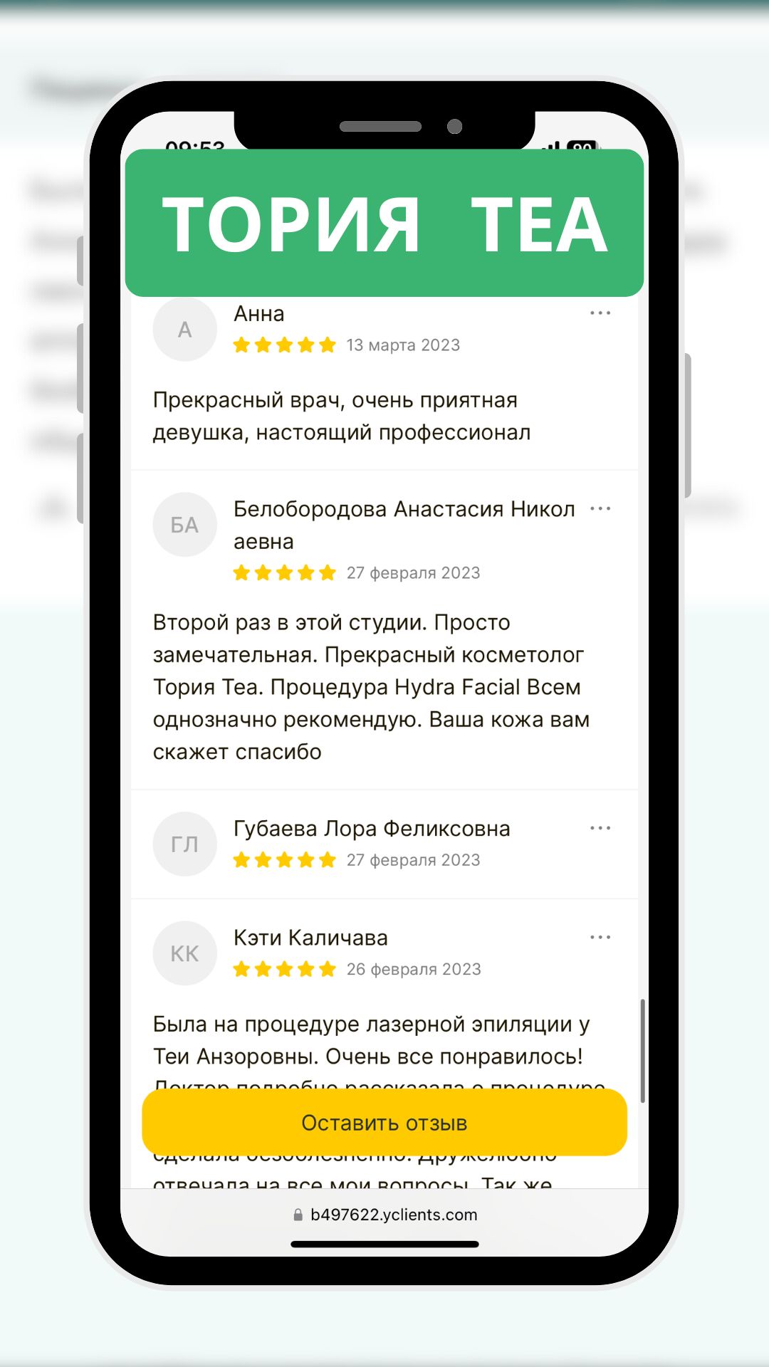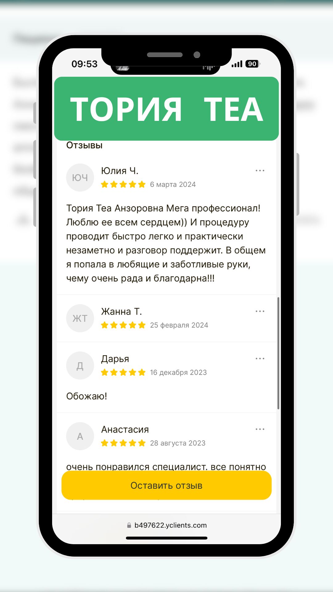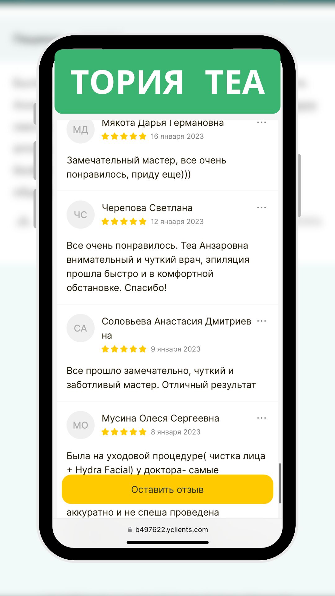 Тория Теа Анзоровна профессионально владеет аппаратными методиками лечения пигментации и сосудов, акне и удаления рубцов. Любит инъекционные методы и проводит ботулинотерапию, контурную пластику, биоревитализацию, и считает, что красивая кожа - это самое главное в привлекательности как женщин, так и мужчин.