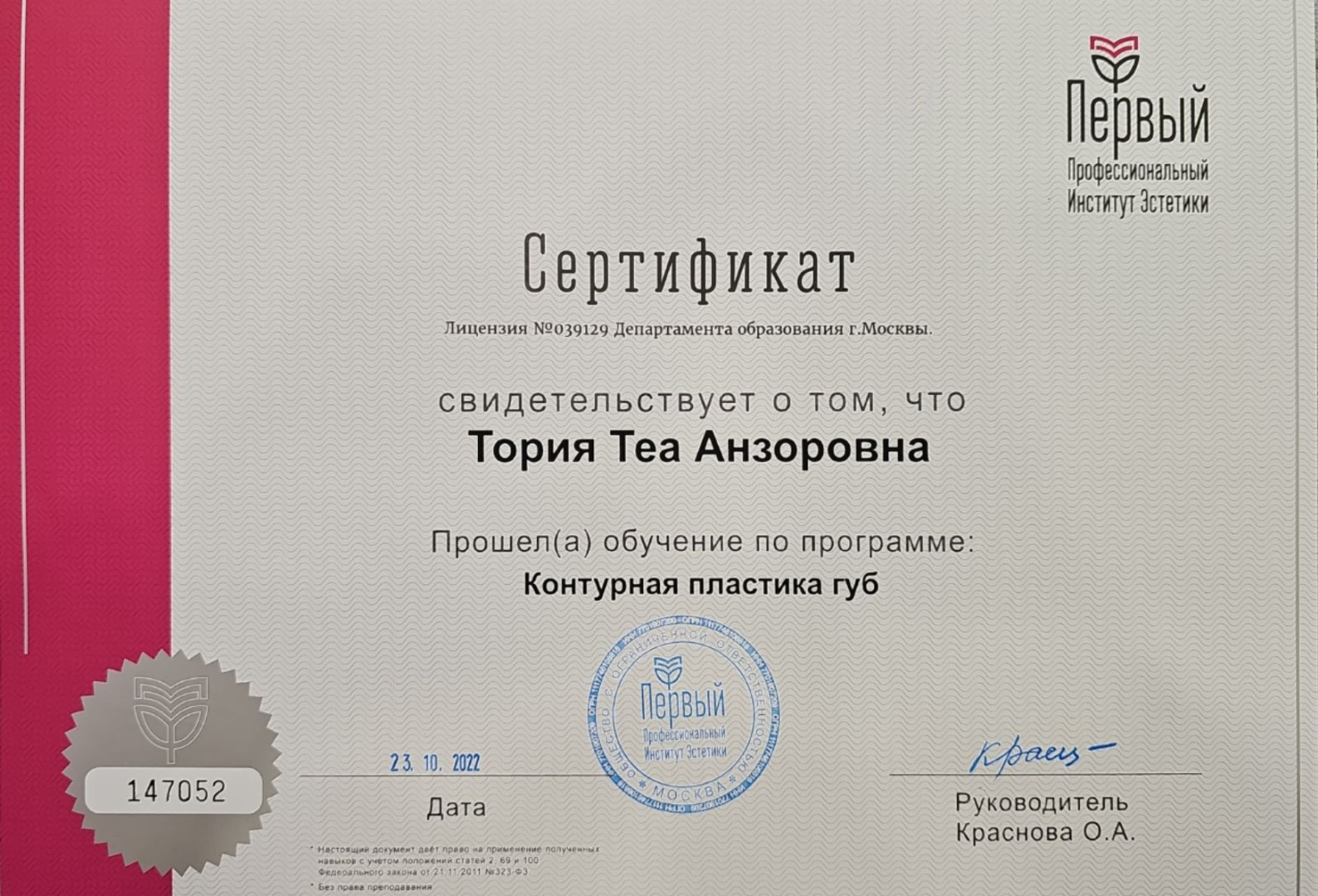 2022 - профессиональная переподготовка по специальности "Косметология", ООО "Первый Профессиональный Институт Эстетики".