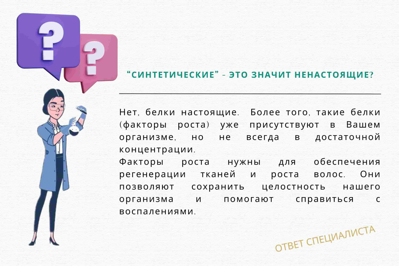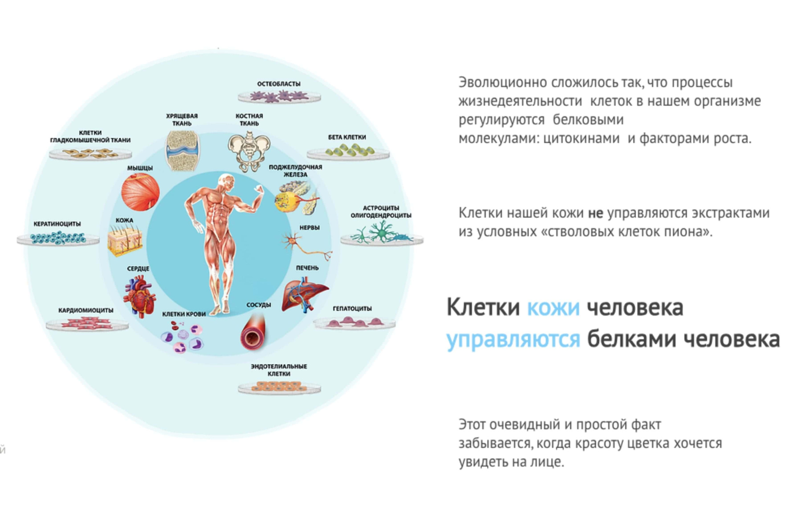 И буквально за последние 5 лет появляются исследования про других дирижеров – фактор роста фибробластов, тромбоцитов, которые руководят другими процессами в коже. Накапливается все больше доказательств того, что создавая смеси из факторов роста, можно «ставить задачи» клеткам, в каком направлении работать.