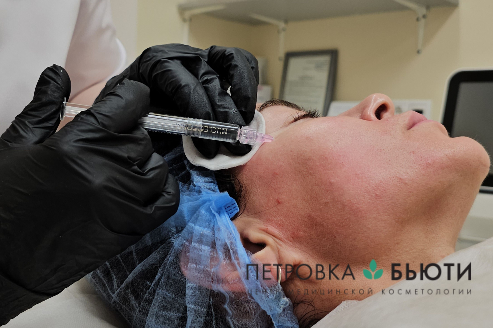 Косметолог вводит под кожу Нуклеоформ. Он поставляется в стерильных шприцах по 2 мл. Препарат питает кожу и стимулирует работу клеток. Кроме того, запускает механизмы регенерации и деления клеток.