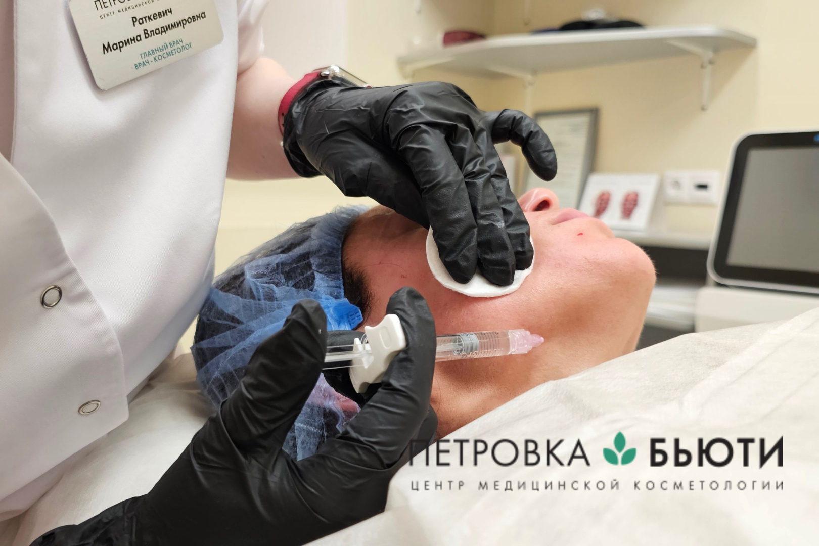 Смывается крем-анестетик. Поверхность обрабатывается дезинфицирующим составом. Косметолог размечает зоны ввода и инъекционно маленькими дозами вводит препарат. Работа всегда проводится в перчатках в условиях процедурного кабинета. Не забывайте, что все поверхности в таких кабинетах после каждого пациента также обрабатываются для исключения присоединения инфекции.