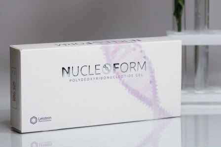 Одними из самых эффективных препаратов для восстановления тонуса кожи и ее увлажнения являются препараты с полинуклеотидами. Препарат, который мы предлагаем в клинике, называется Нуклеоформ (NucleoForm) - производства немецкой компании Leistern.