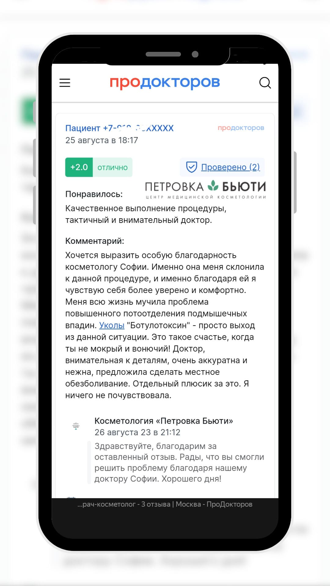 Наши косметологи всегда с вами на связи, на любой вопрос мы отвечаем в течение часа (в рабочее время).