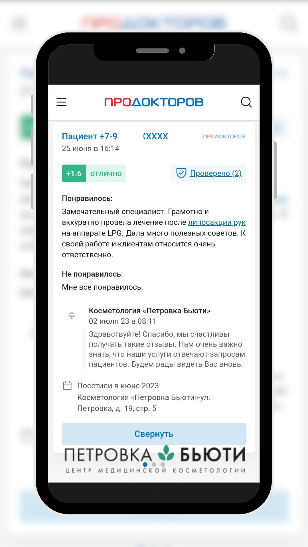 В итоге, мы получили хороший результат, поскольку пациент добросовестно выполняла все необходимые предписания (режим питания, физическая нагрузка, комбинация процедур).