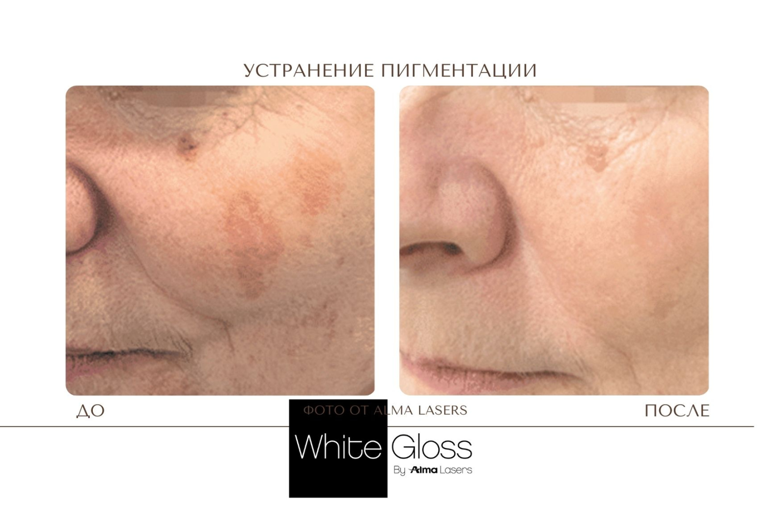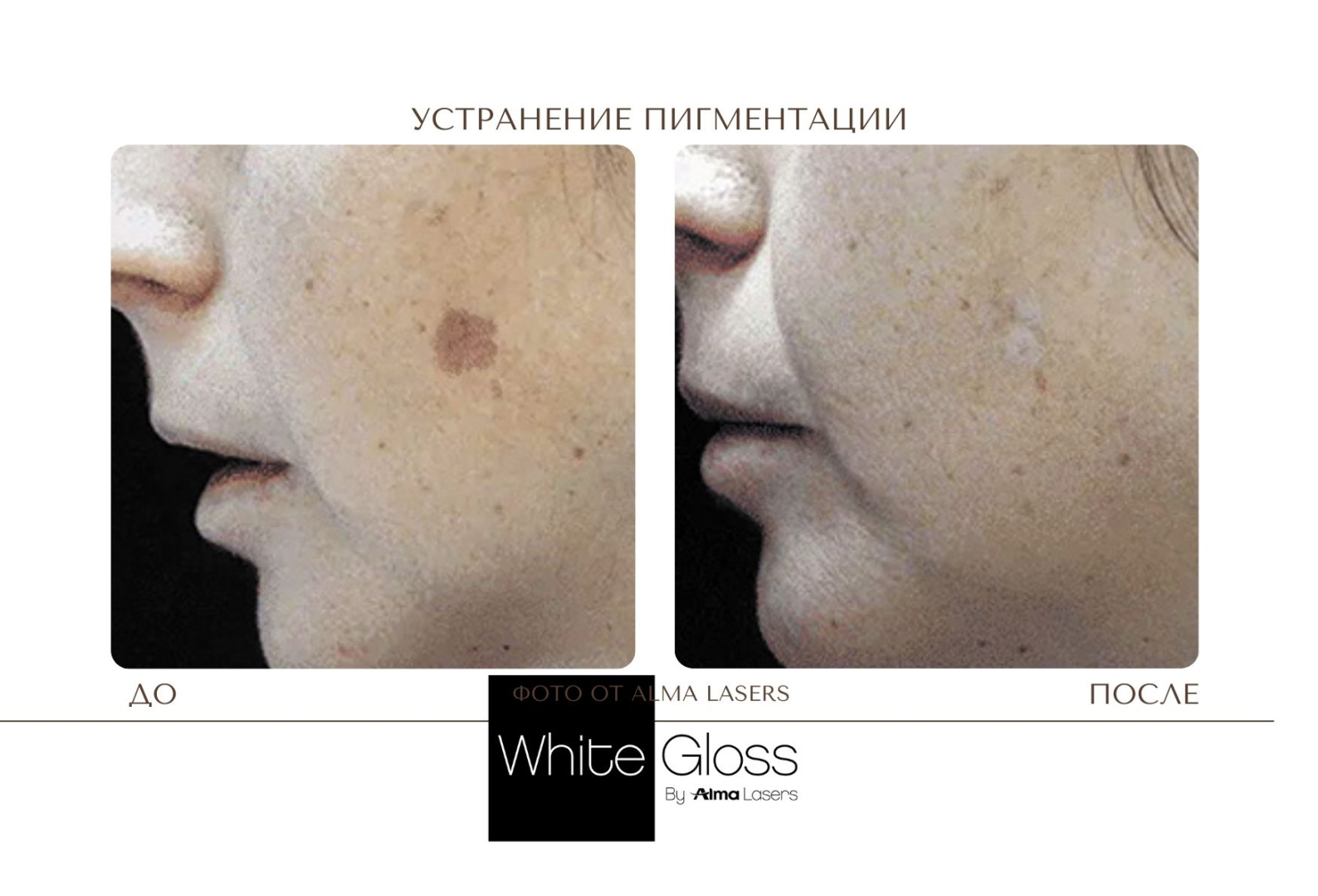 Протокол процедуры White Gloss относится к комбинированным методикам и включает лазерное и фото удаление пигмента:
