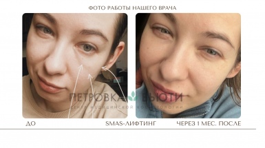 Обычно достаточно одной процедуры SMAS-лифтинга. Для сильно возрастной кожи может потребоваться вторая через 6 месяцев. Результат сохраняется около двух лет. При этом сам эффект накопительного характера: максимально результат проявится примерно через полгода.